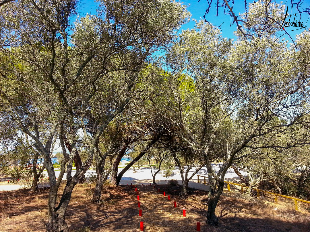 Après le resto, histoire de digérer, nous nous sommes dirigés vers l’écomusée Mundet, ancienne fabrique de liège. Malheureusement il était fermé. Dommage car j’aurais bien aimé en savoir plus sur l’industrie du liège. Pas grave, nous avons continué notre promenade en grimpant une petite côte qui conduit au parc Dona Ana, lequel a été rénové très récemment. Et là surprise, une incroyable vue sur la baie de Seixal et plus généralement sur l’estuaire du Tage nous attendait. Je dois dire que même les parents de mon compagnon ne connaissaient pas cette vue et ils en ont pris plein les mirettes! De Barreiro jusqu’à Almada, le panorama est juste fantastique, avec en arrière-plan, Lisbonne encadrée des ponts Vasco da Gama et 25 Avril.