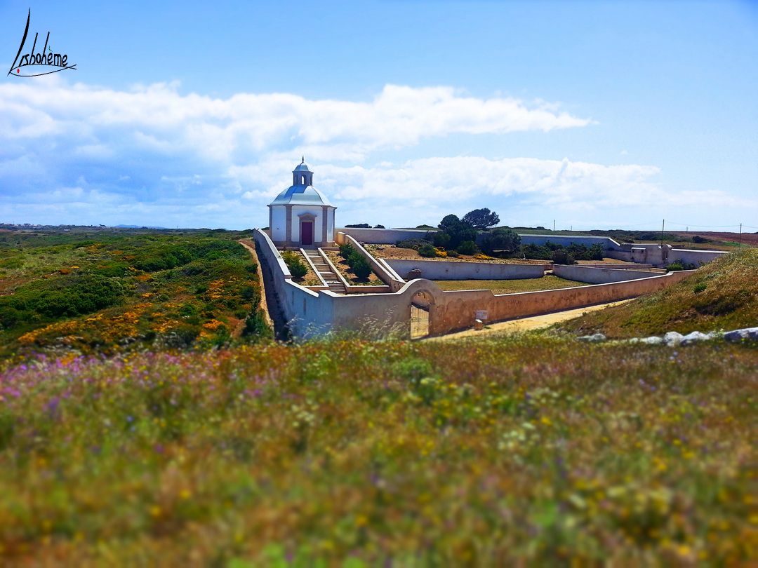 Lors d’un weekend prolongé, nous avons loué une voiture pour visiter la famille de mon compagnon qui vit à Carvalhal dans l’Alentejo. Région magnifique avec de sublimes plages de sable blanc et des eaux turquoises. A l’occasion, il faudra que j’écrive un article dessus. Bref, comme nous avions une voiture, nous en avons profité pour enfin découvrir le Cap Espichel. Et là, un vrai coup de cœur pour cette lande, battue par les embruns. Et cerise sur la gâteau, un très intéressant sanctuaire, aujourd’hui abandonné, témoin de légendes anciennes.