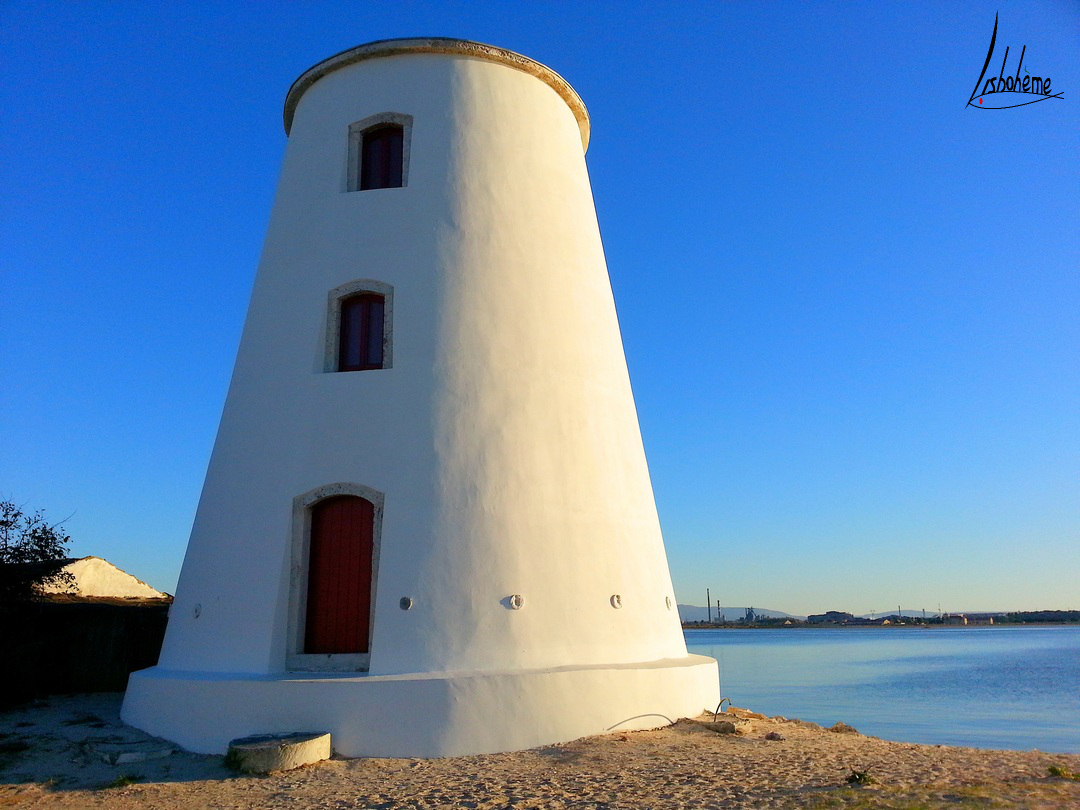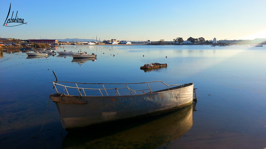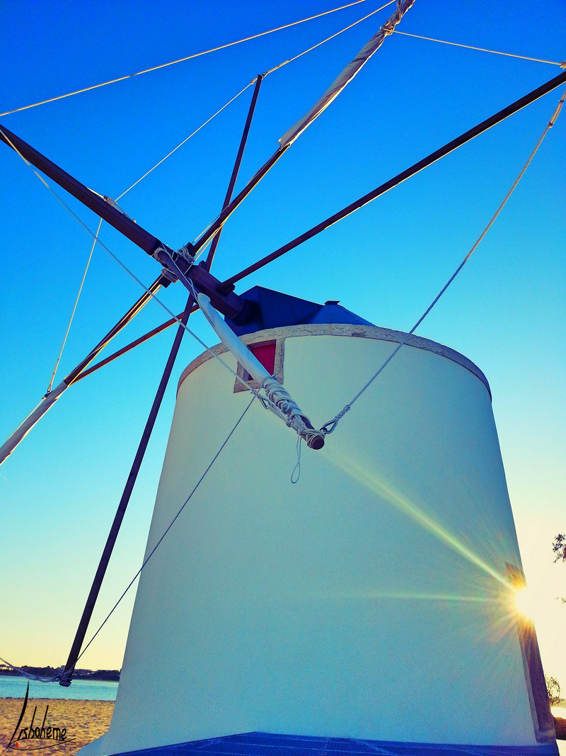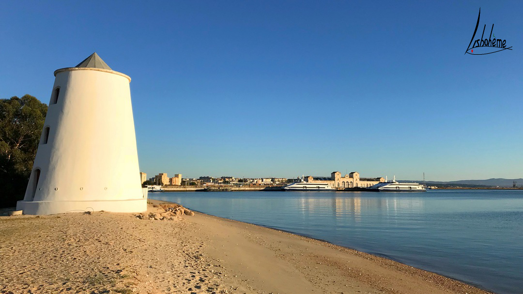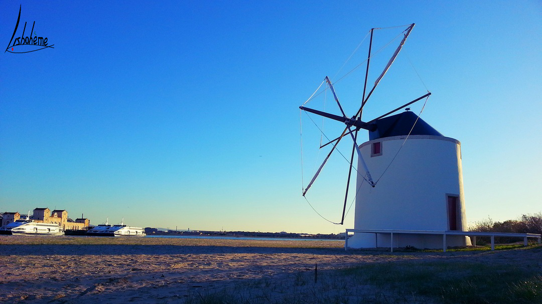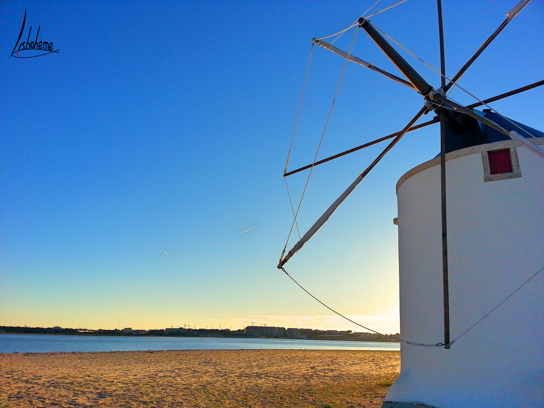 Cette semaine, nous allons traverser le Tage, destination Barreiro. C’est une ville que j’ai découverte récemment depuis qu’un projet important m’amène à m’y rendre souvent. Lors de la traversée en ferry, on peut apercevoir une plage et quelques moulins à vent, tout près de la gare fluviale. Curieuse comme je suis, je n’ai pas pu m’empêcher d’aller explorer le coin, à la découverte des moulins de Barreiro. Le temps était idéal, un magnifique ciel bleu, un glorieux soleil couchant et mon chéri, tout pour rendre cette balade romantique à souhait.