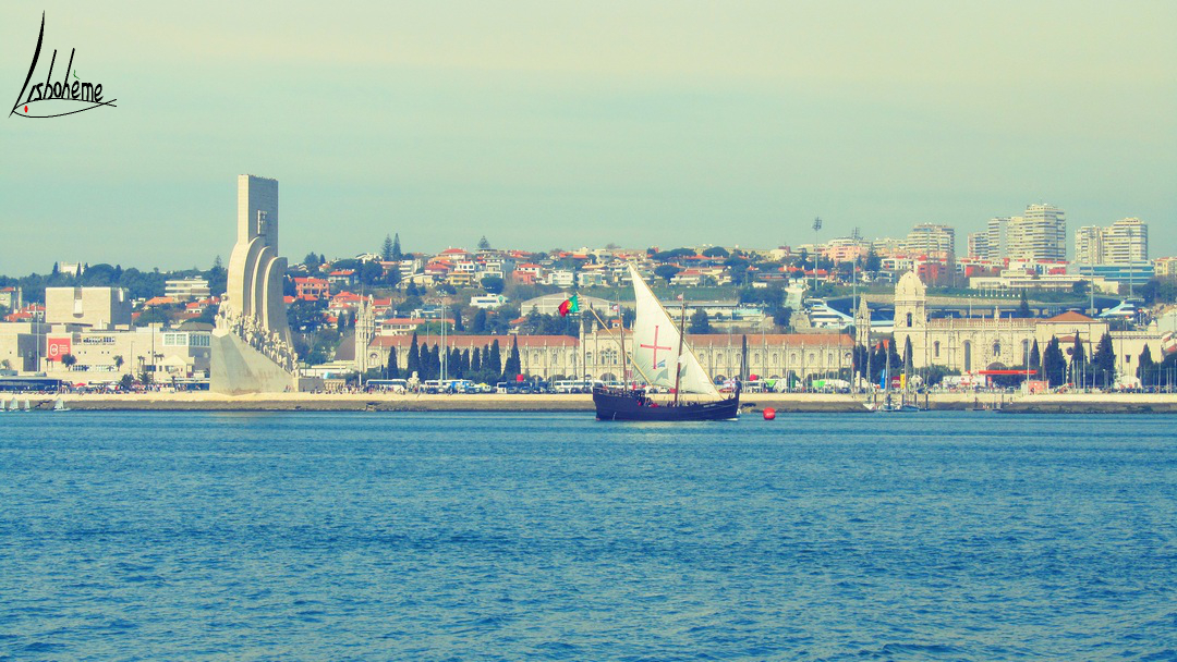 - Le monument aux Découvertes et le monastère des Hiéronymites. Au premier-plan, le navire Vera Cruz, réplique d’une caravelle portugaise du XVème siècle.